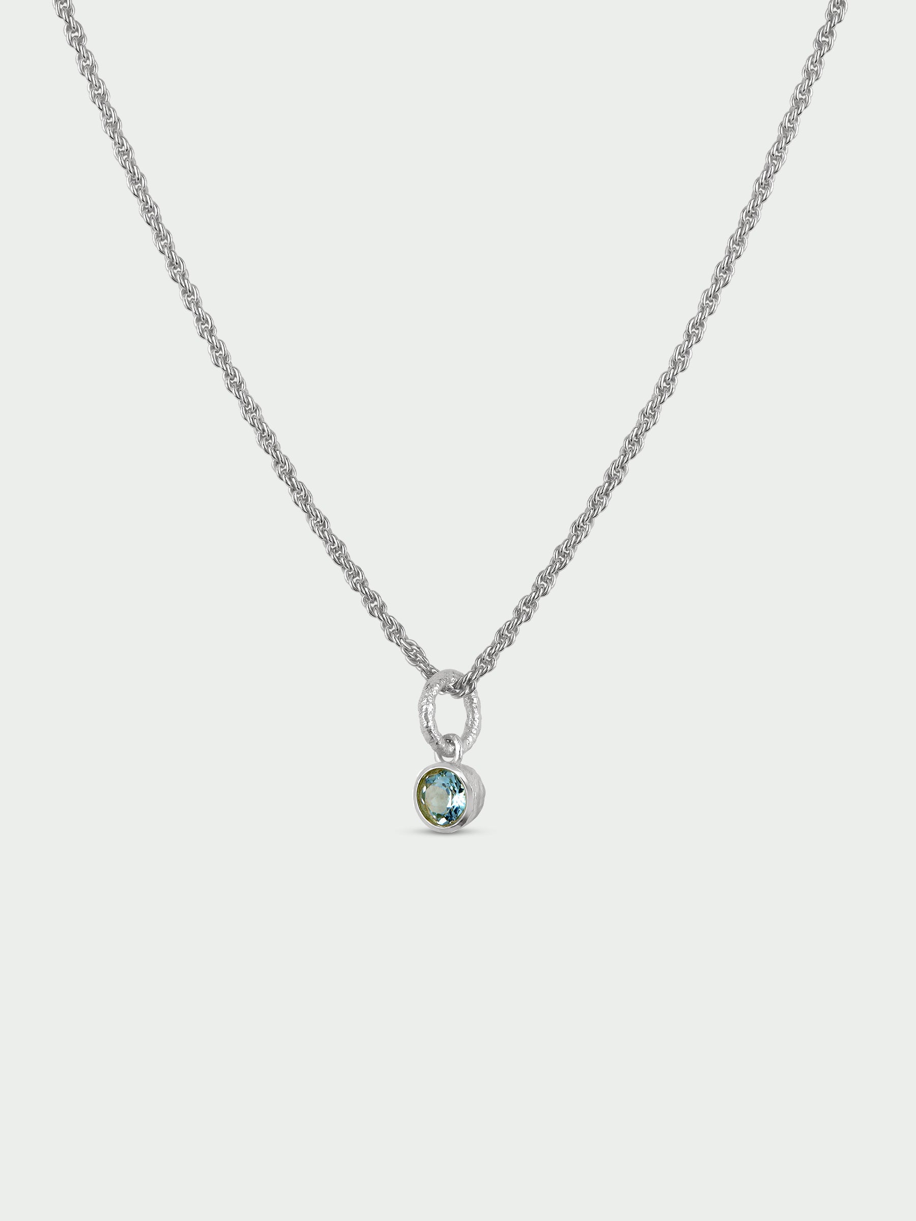 Blue Topaz Stone Pendant with Rope Chain, Silver