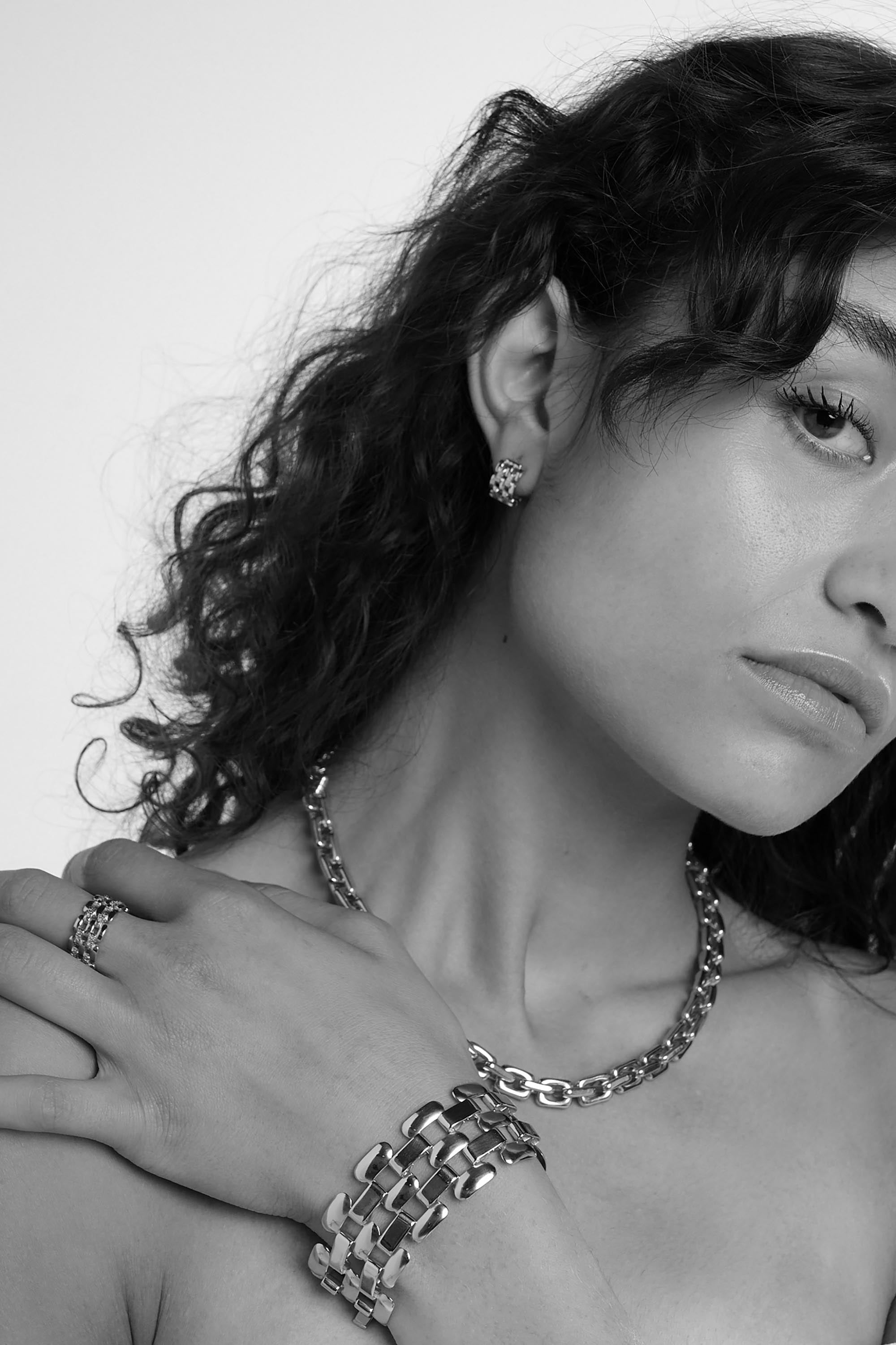 Our collections are made from 98% recycled metals, sourced from our trusted Italian suppliers. Each piece is crafted from a solid brass base, plated with 925 Sterling Silver. Our Gold styles are then plated with a considered, gold-tone finish.