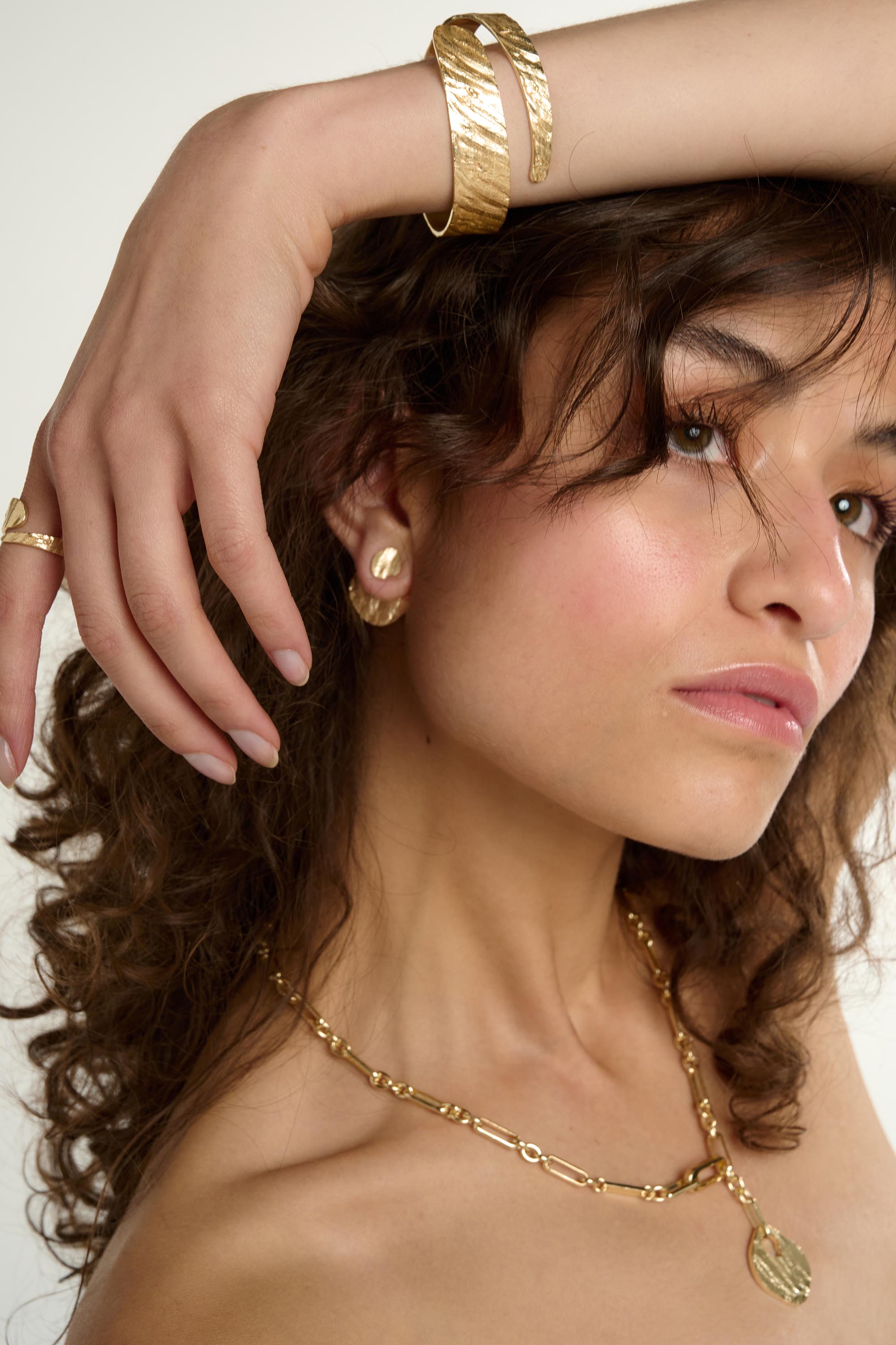 Our collections are made from 98% recycled metals, sourced from our trusted Italian suppliers. Each piece is crafted from a solid brass base, plated with 925 Sterling Silver. Our Gold styles are then plated with a considered, gold-tone finish.