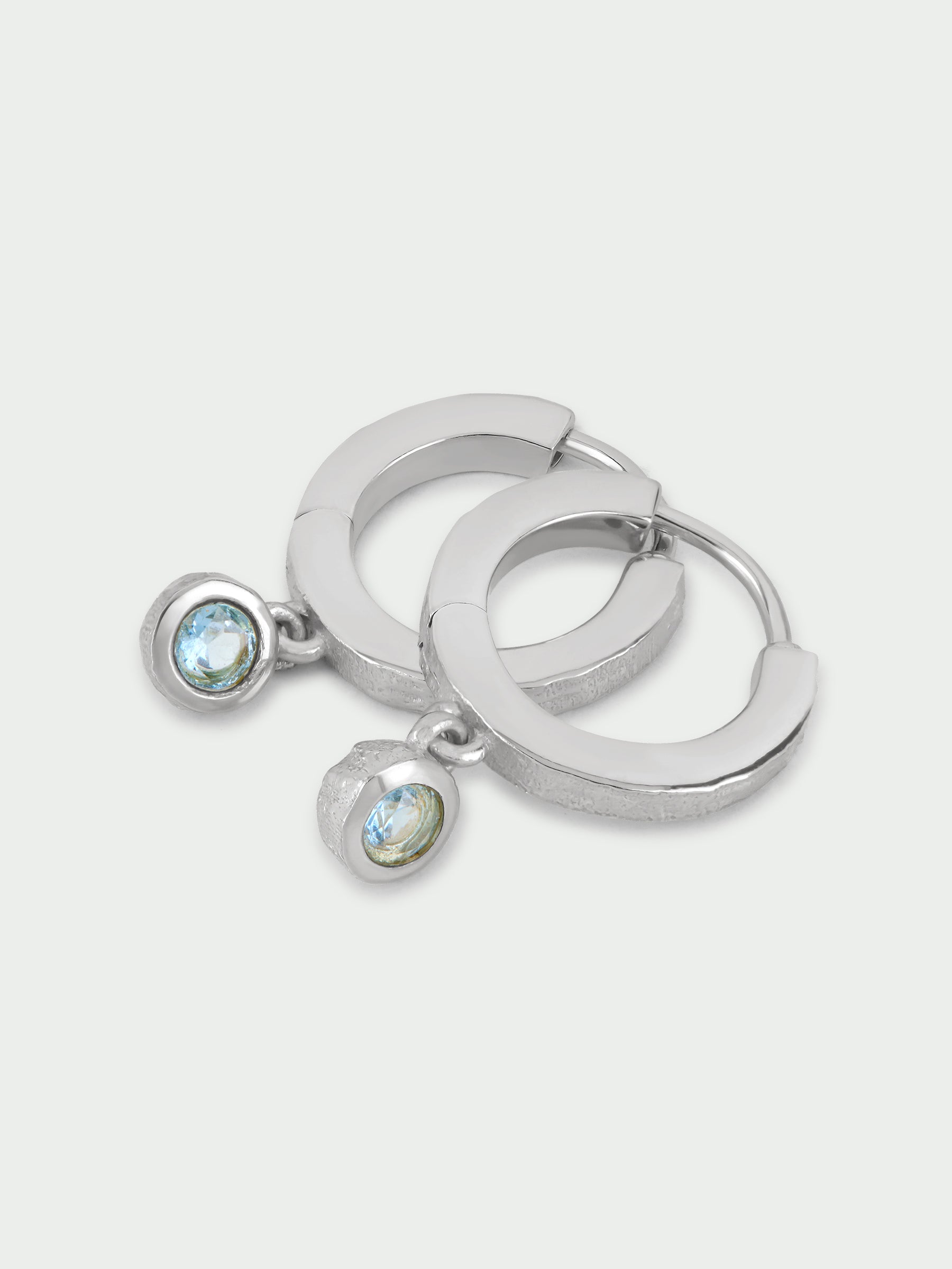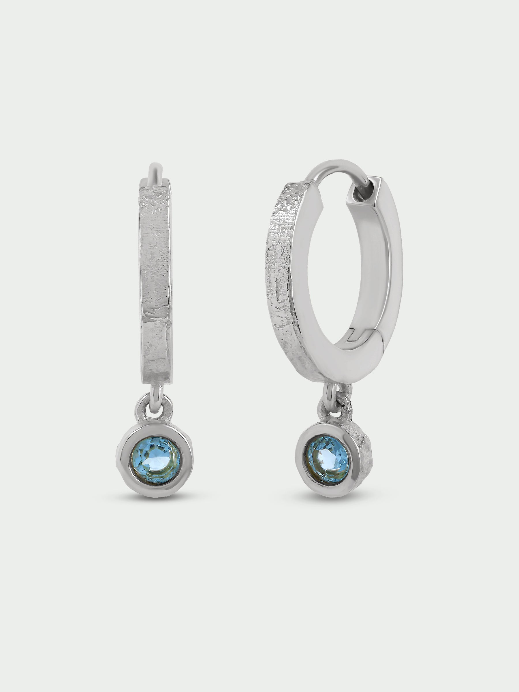 Blue Topaz Stone Huggie Hoops, Silver