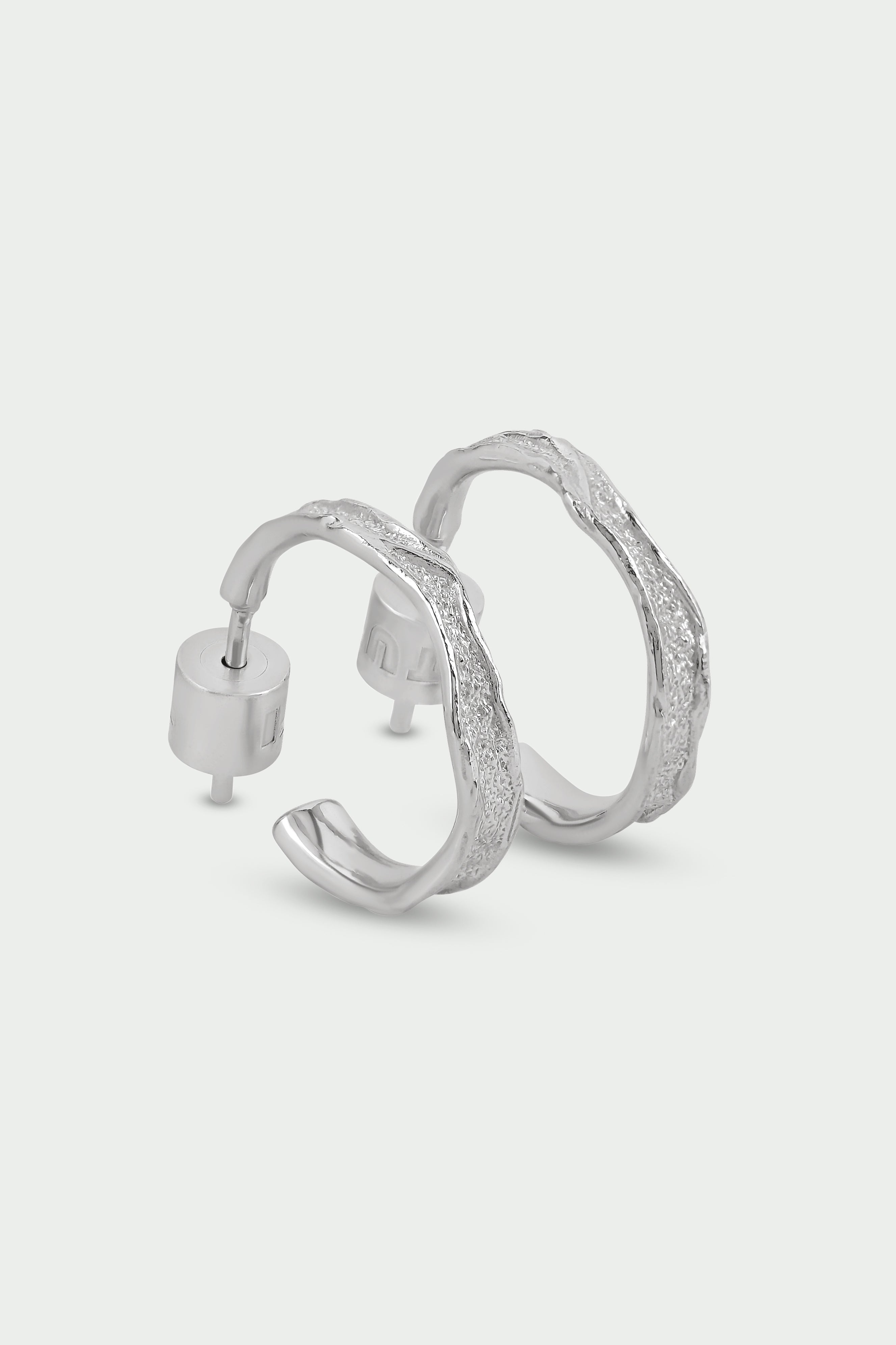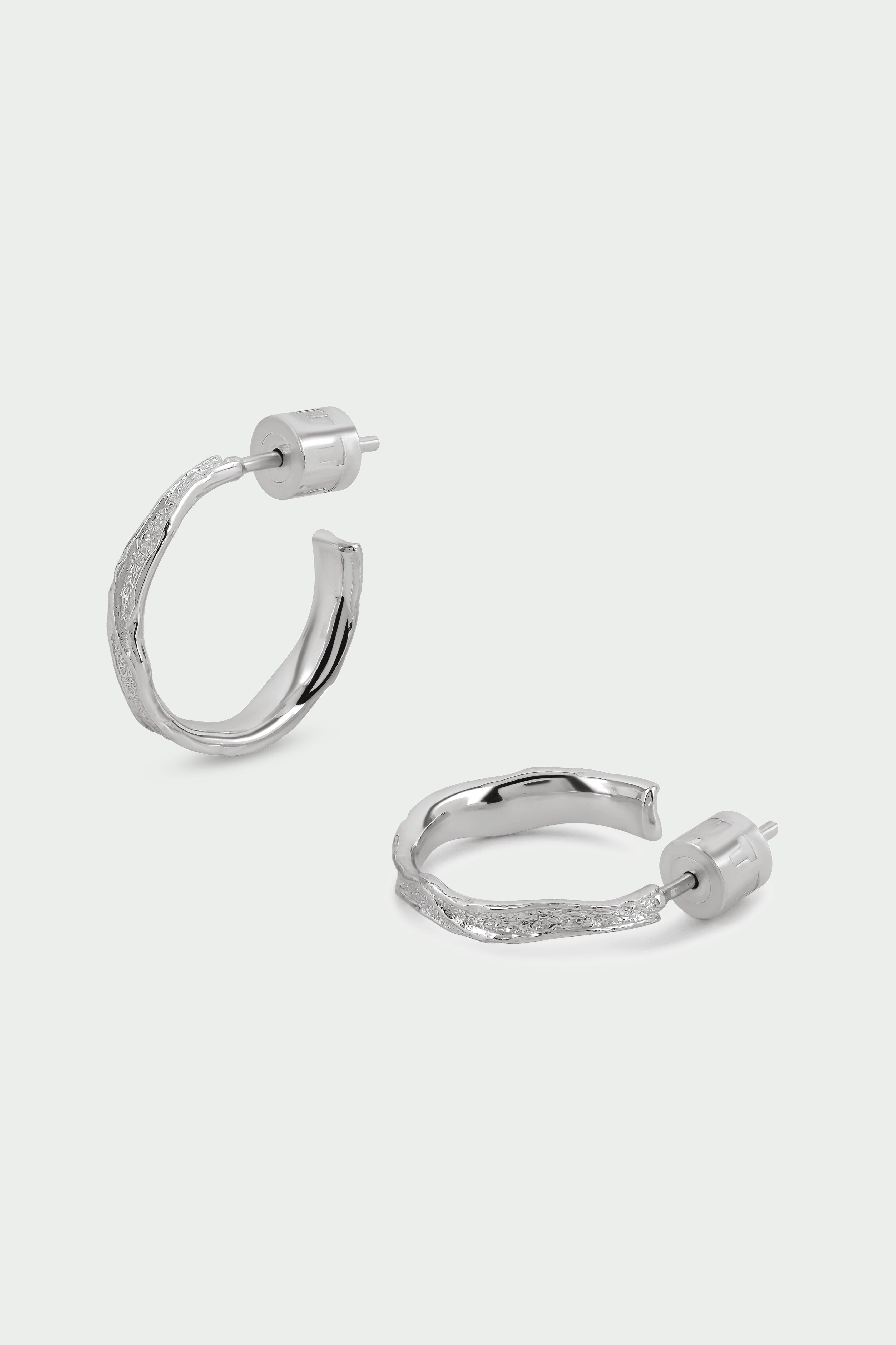 Organic Textured Medium Hoops, Silver