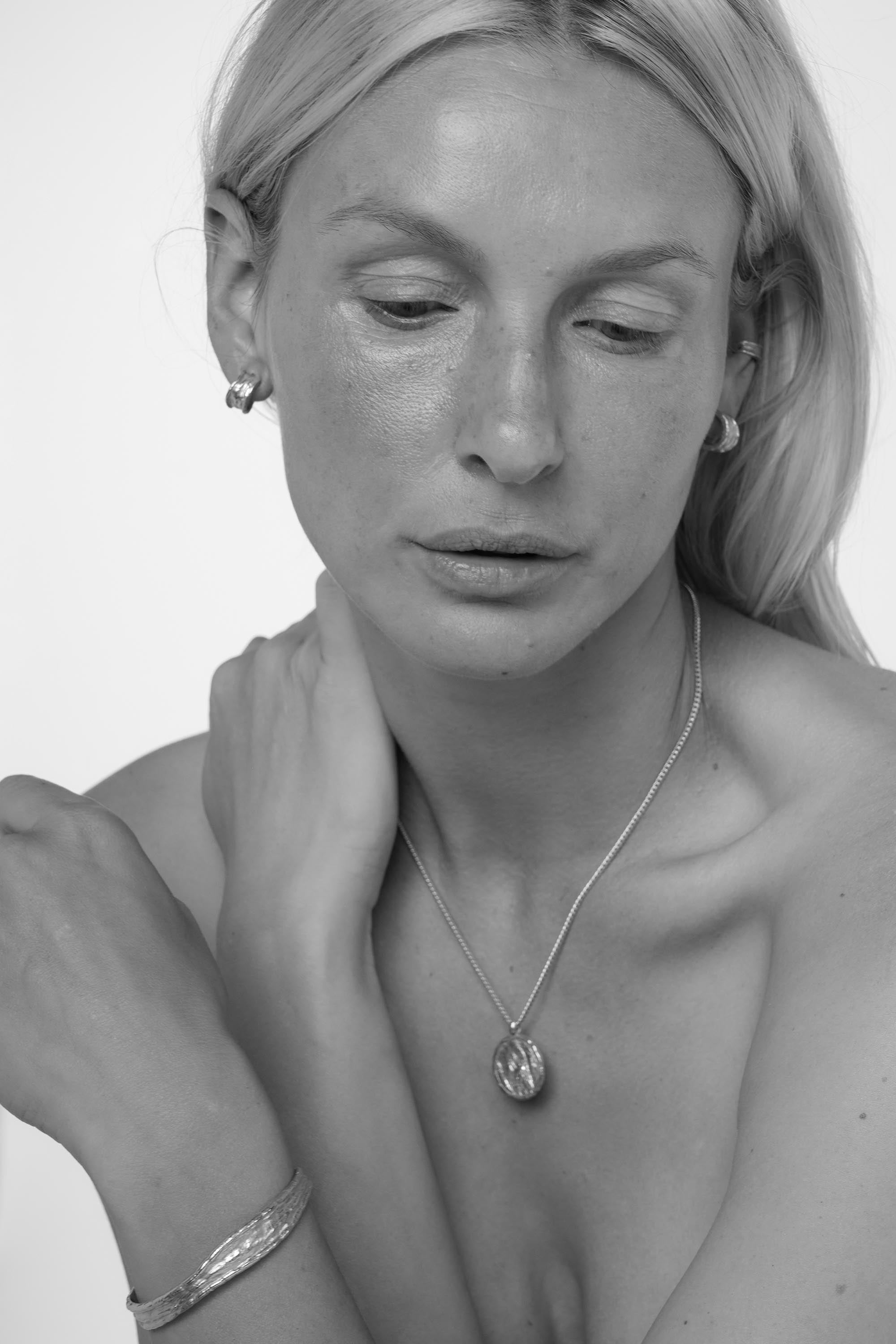 Our collections are made from 98% recycled metals, sourced from our trusted Italian suppliers. Each piece is crafted from a solid brass base, plated with 925 Sterling Silver. Our Gold styles are then plated with a considered, gold-tone finish.