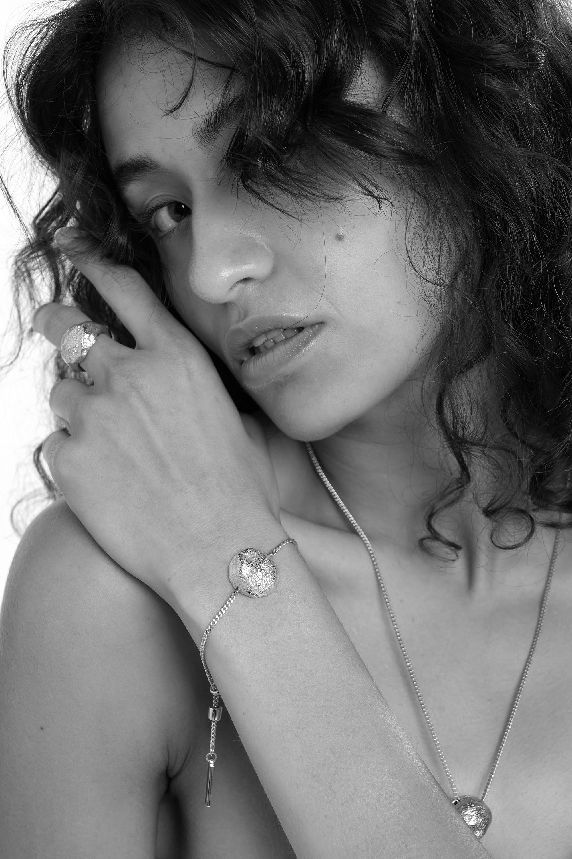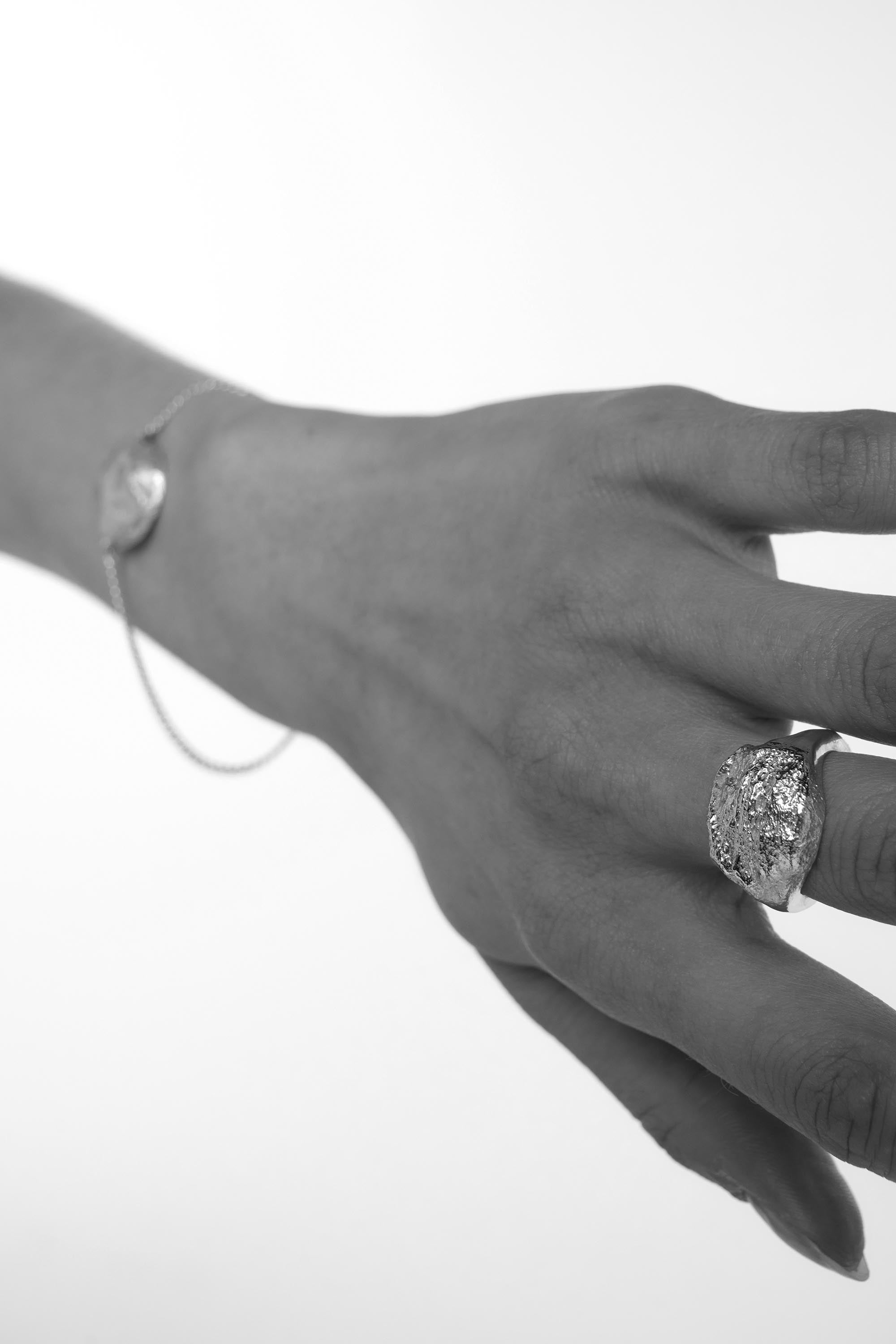Our collections are made from 98% recycled metals, sourced from our trusted Italian suppliers. Each piece is crafted from a solid brass base, plated with 925 Sterling Silver. Our Gold styles are then plated with a considered, gold-tone finish.